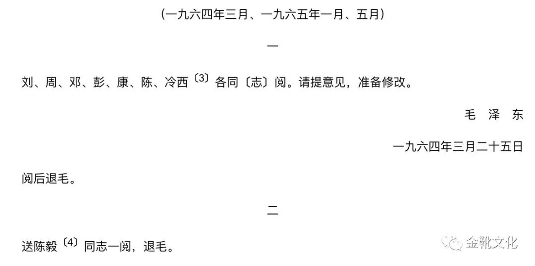 1941年9月前后,毛主席在延安曾写过一篇长达五万多字的雄文:《关于一九三一年九月至一九三五年一月期间中央路线的批判》。这篇长文着力批判了彼时中共六届四中全会后,中央发出的《关于争取革命在一省与数省首先胜利的决议》《在争取中国革命在一省与数省的首先胜利中中国共产党内机会主义的动摇》等多达九个文件。这九个文件比较集中地体现了土地革命时期党的某些过“左”的路线政策,也是毛主席一生中多次倾尽全力对抗“左”倾、孜孜不倦抗衡官僚主义,动作较大的一次。就写作角度,主席此文的写法很像是这九个文件的阅读笔记,直截了当层层批驳。他不仅直接点了当时好几位中央政治局委员的名字,且用词辛辣、观点尖刻、挖苦嘲笑之语随处可见、满篇尽是激愤之情。虽后经数次打磨,但主席特有的咄咄逼人的严厉语气和犀利文风,终仍难以消除。在延安时,主席没有将它发表,只给了少奇和弼时两位同志私下看过。延安整风我此前有述,不仅是斗争的运动、揭露的运动、批判的运动,其本质实则更是一次团结的运动。如果在整风时将这篇关于长征时纠“左”的文章全文公开发表,肯定不利于团结犯错误的同志,乃至还会被反动派分化、利用。思考者可以个性化,军事家可以英雄化,文章家可以情绪化,政治家可以脸谱化——但是对于毛主席而言,他什么都是,却又不仅仅局限于其中任何一个。主席虽不乏个性和情绪、行事与行文均饱含火热,但在治党育吏时仍会竭力控制,更不可能放任自己任何的思绪和主张有“化”的倾向。这也就是为什么老人家的一生总是在与各种“扩大化”作斗争的原因。他总是坚守初心,他总是站稳理论。那篇五万多字的文章,二十年来,从抗战时的40年代到建国后的60年代,看起来仿佛真的是要被当作记录一段心曲的“历史资料”,永远地被主席搁置起来了。可是就在1964年的春天,年过七旬的主席突然毫无征兆地把这篇文章翻出来,批给了少奇同志、恩来同志、小平同志、彭真同志、康生同志、陈云同志、冷西同志、陈毅同志等人阅看,还郑重交代:请提意见,准备修改。