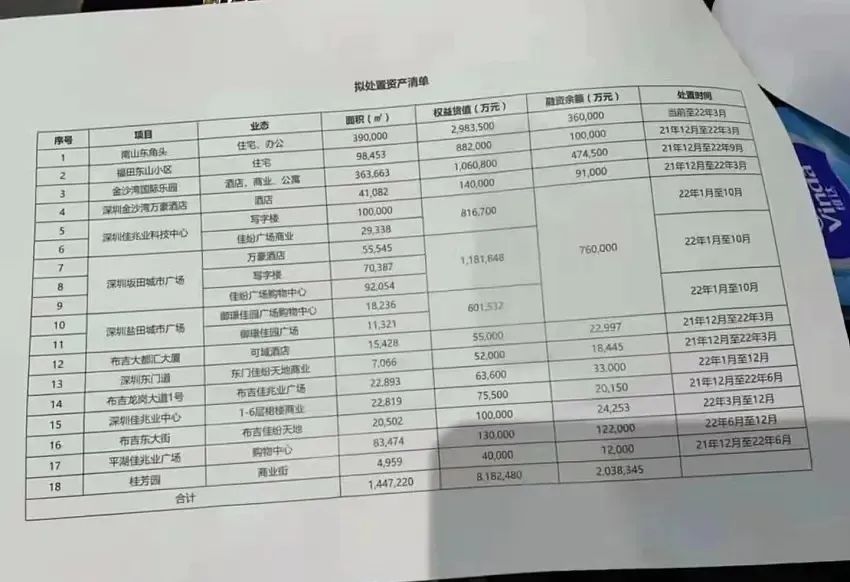 将处置818亿的资产,主要是集中在深圳的商办、旧改等项目。